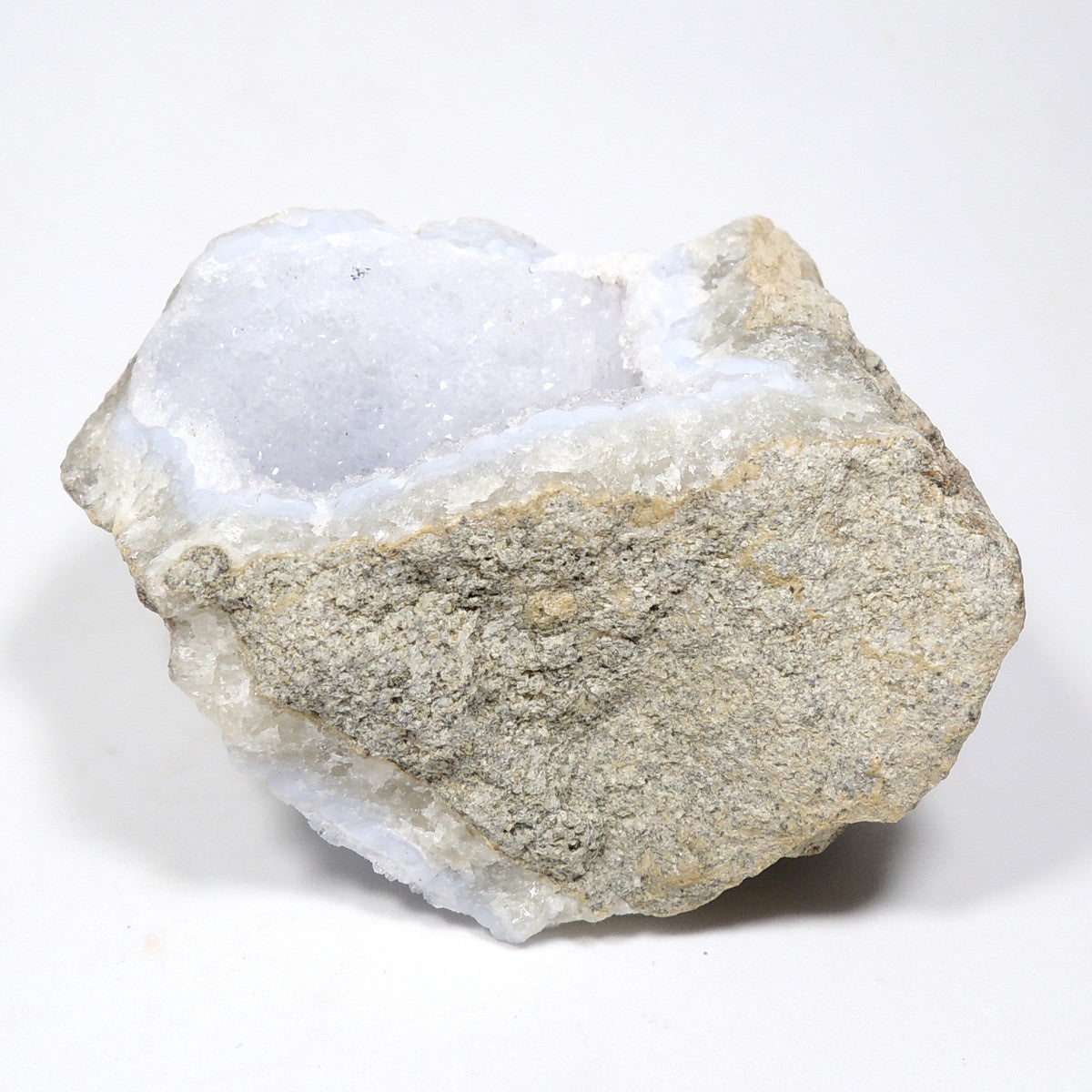 淡い空色の、ブルーレースアゲート(空色縞瑪瑙)の標本。