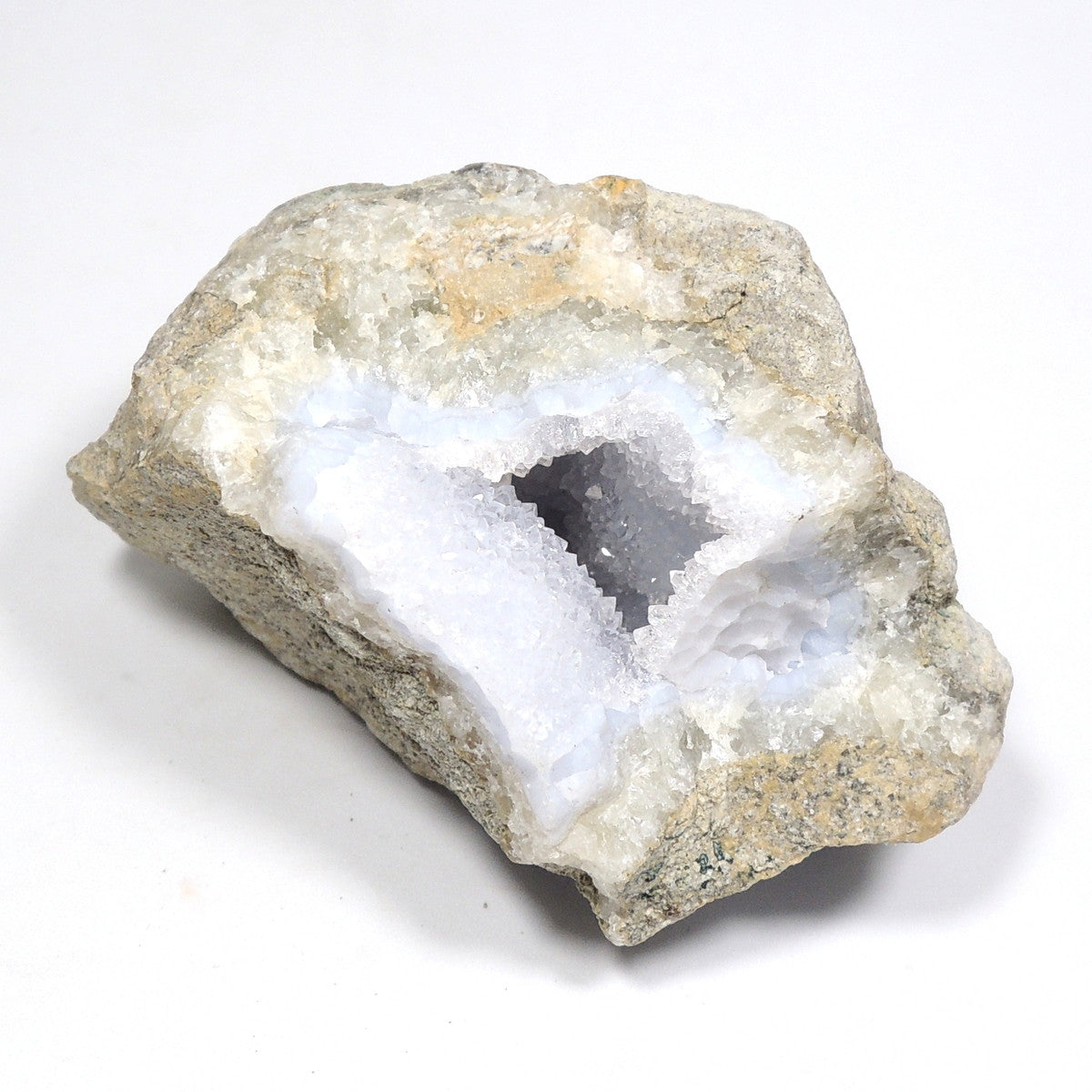 こちらは、美しい空色のもの。割れ口から、レースのような淡い色合いの縞模様を確認できます。