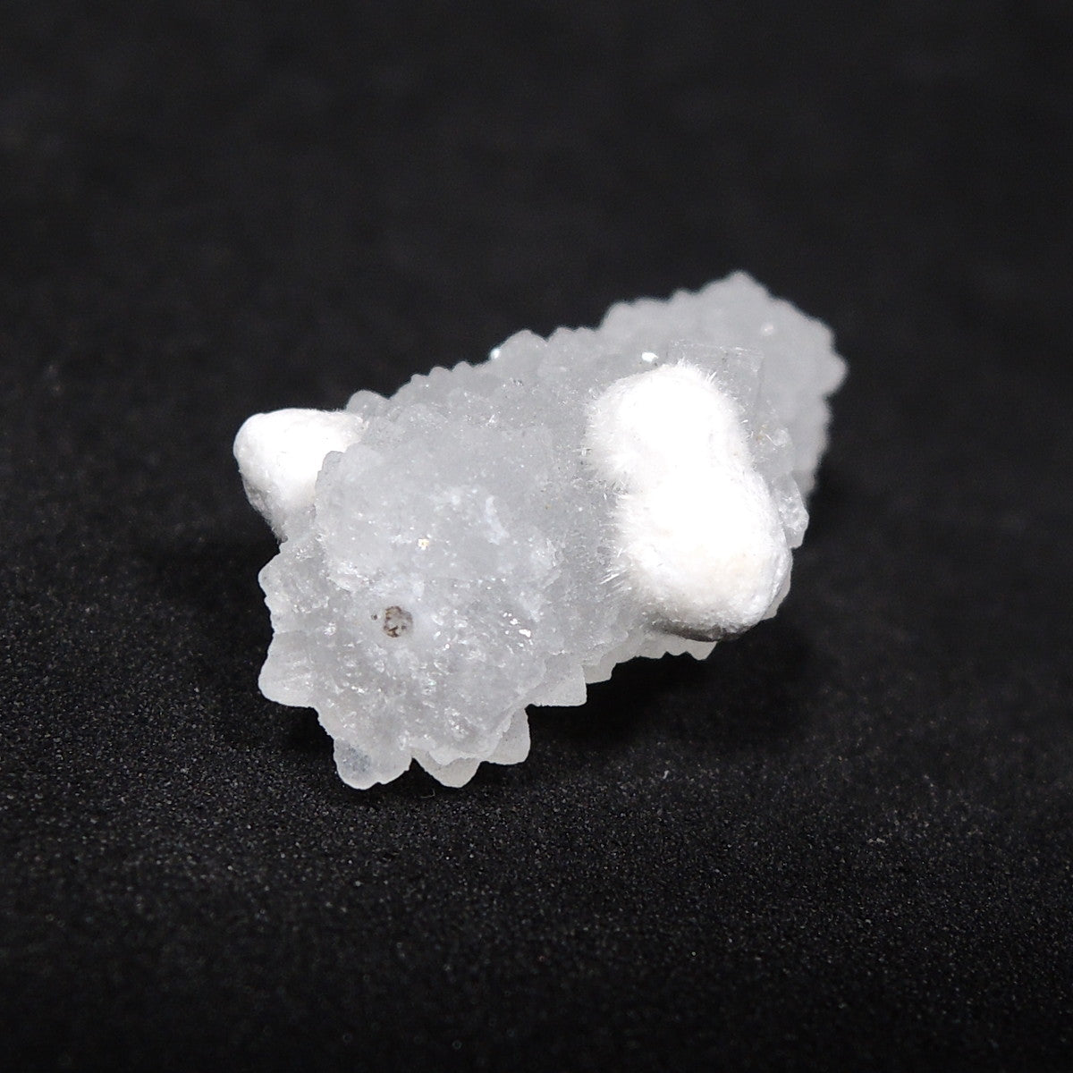 綿花のような結晶がモルデナイト、半透明の部分がカルセドニーです。