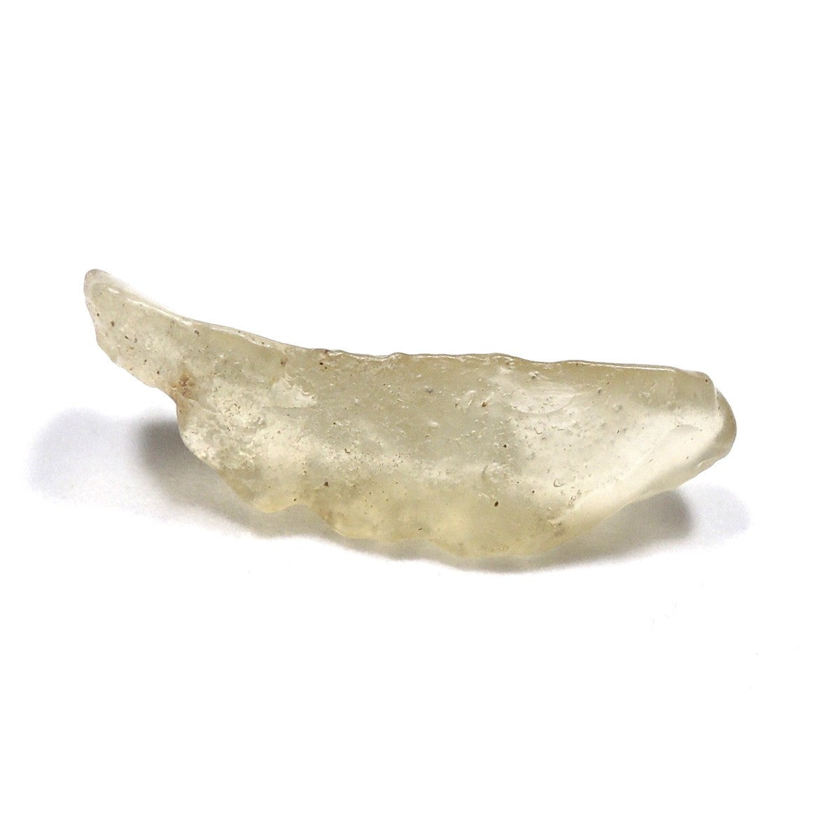 テクタイトの一種、リビアングラスの標本。隕石の衝突によって地上の土や砂が溶けて作られる天然ガラスです。リビア砂漠産。