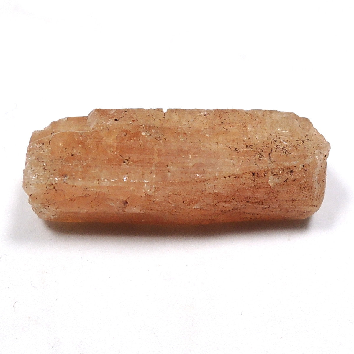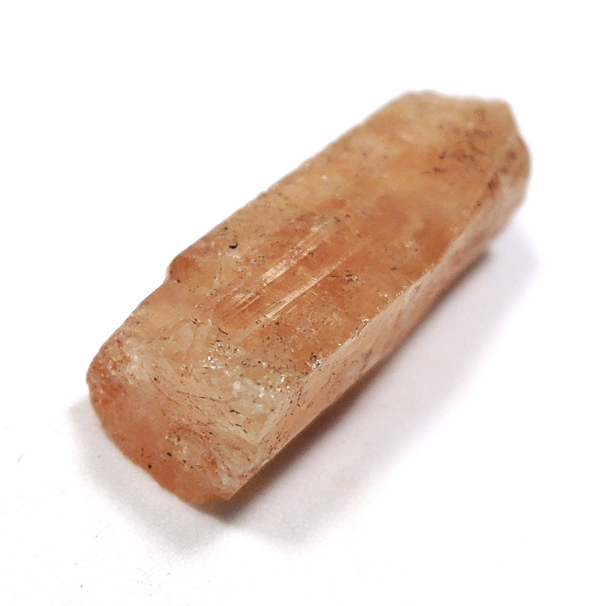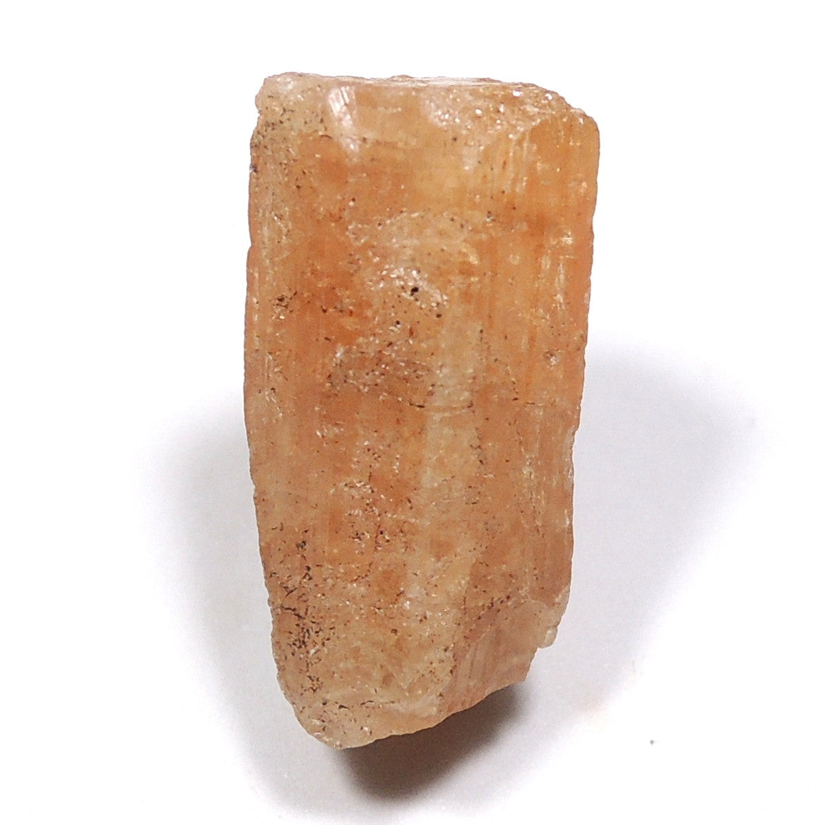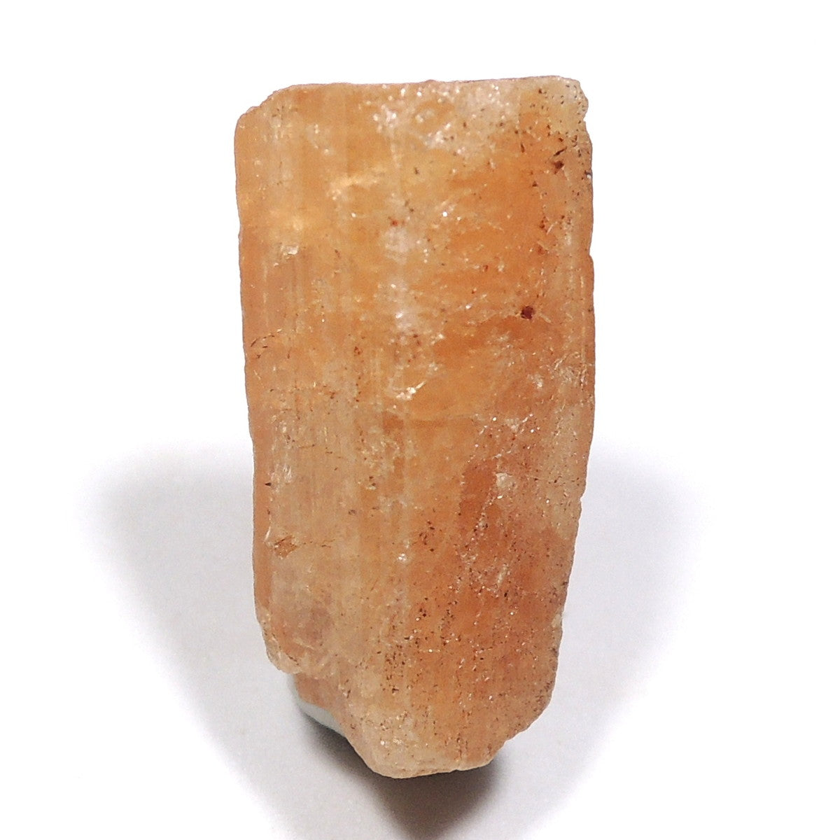 黄色や桃色、青、無色透明など様々な色で産出しますが、宝石としては黄色のものが珍重されます。こちらの標本はオレンジ色です。