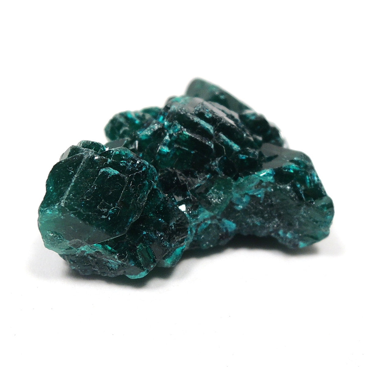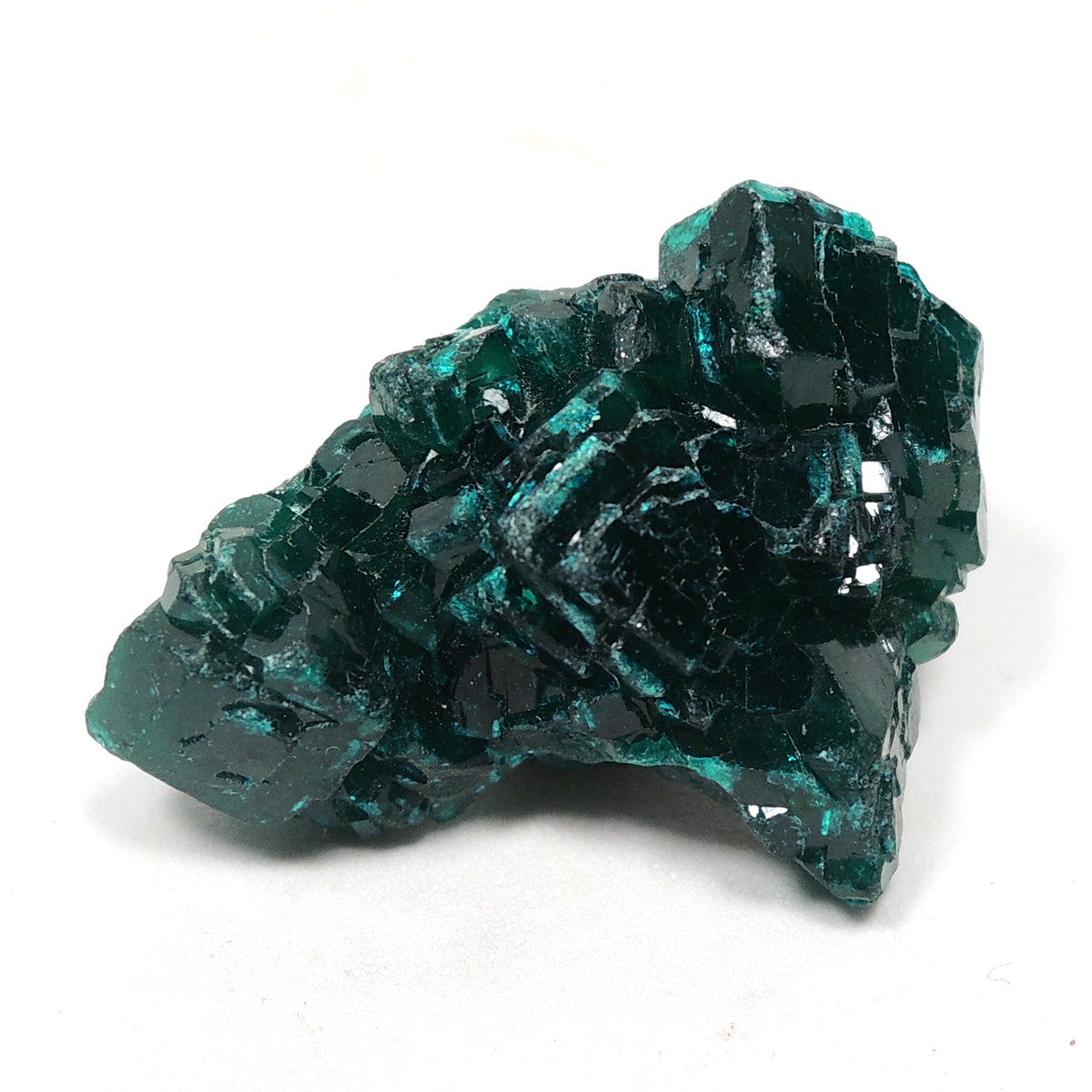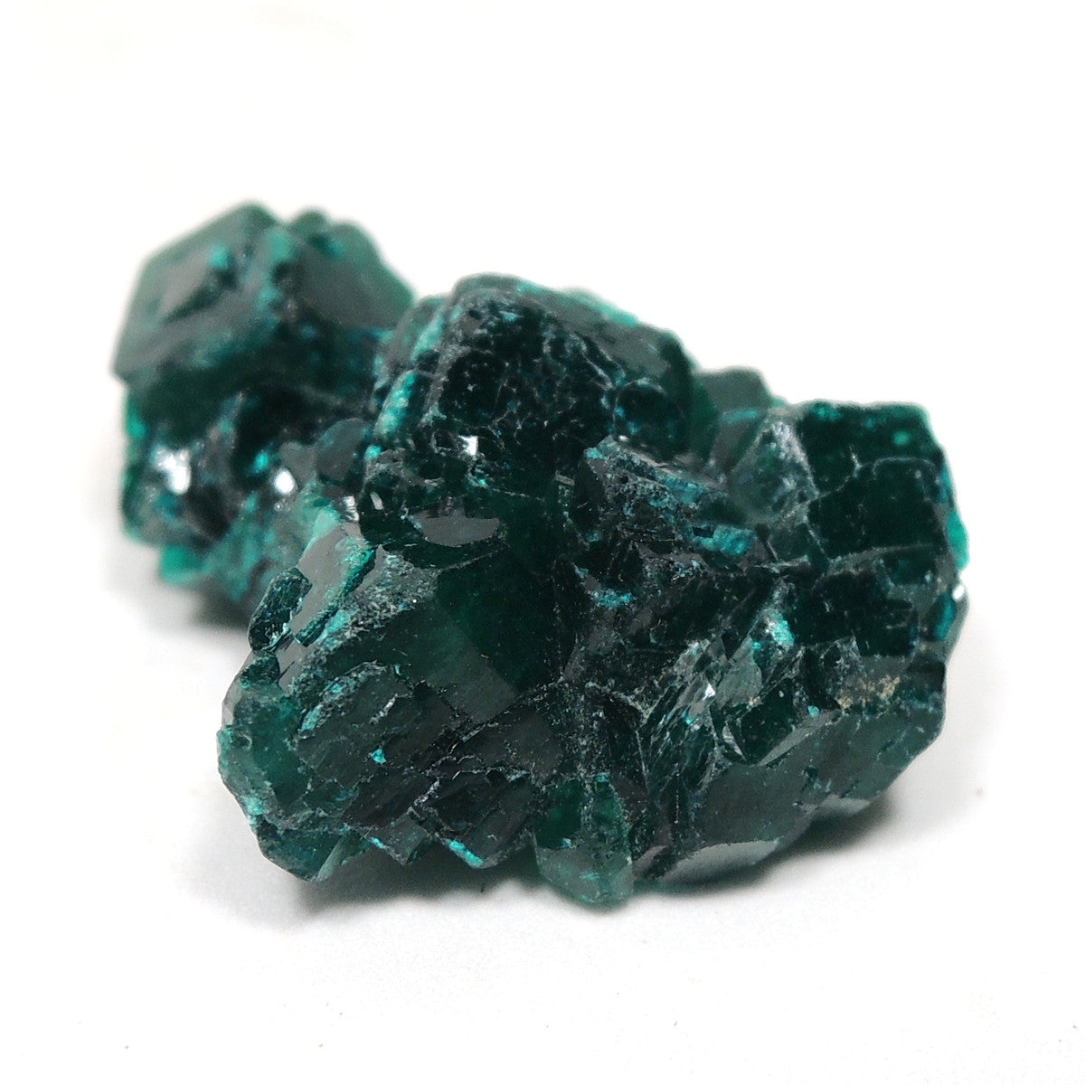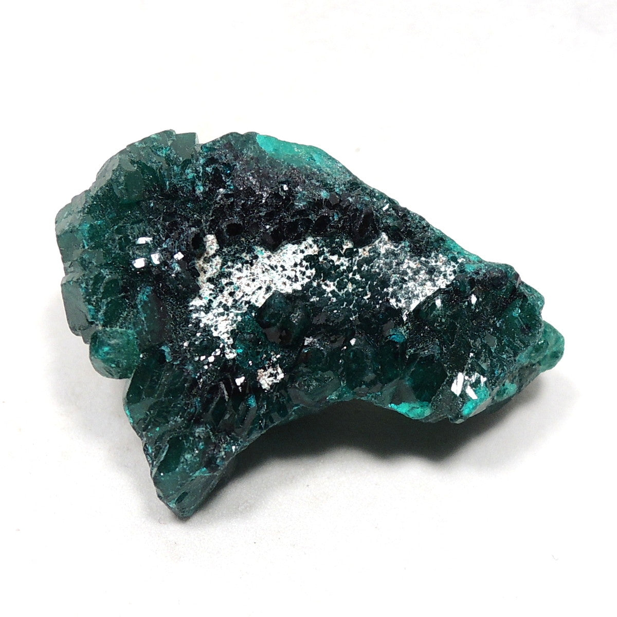深い緑色の結晶が美しい、ダイオプテーズ(翠銅鉱)の標本。