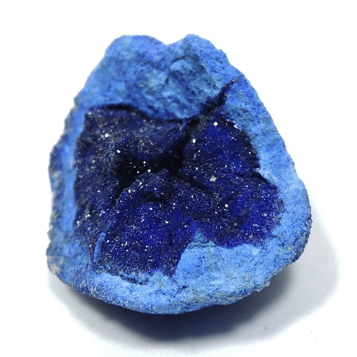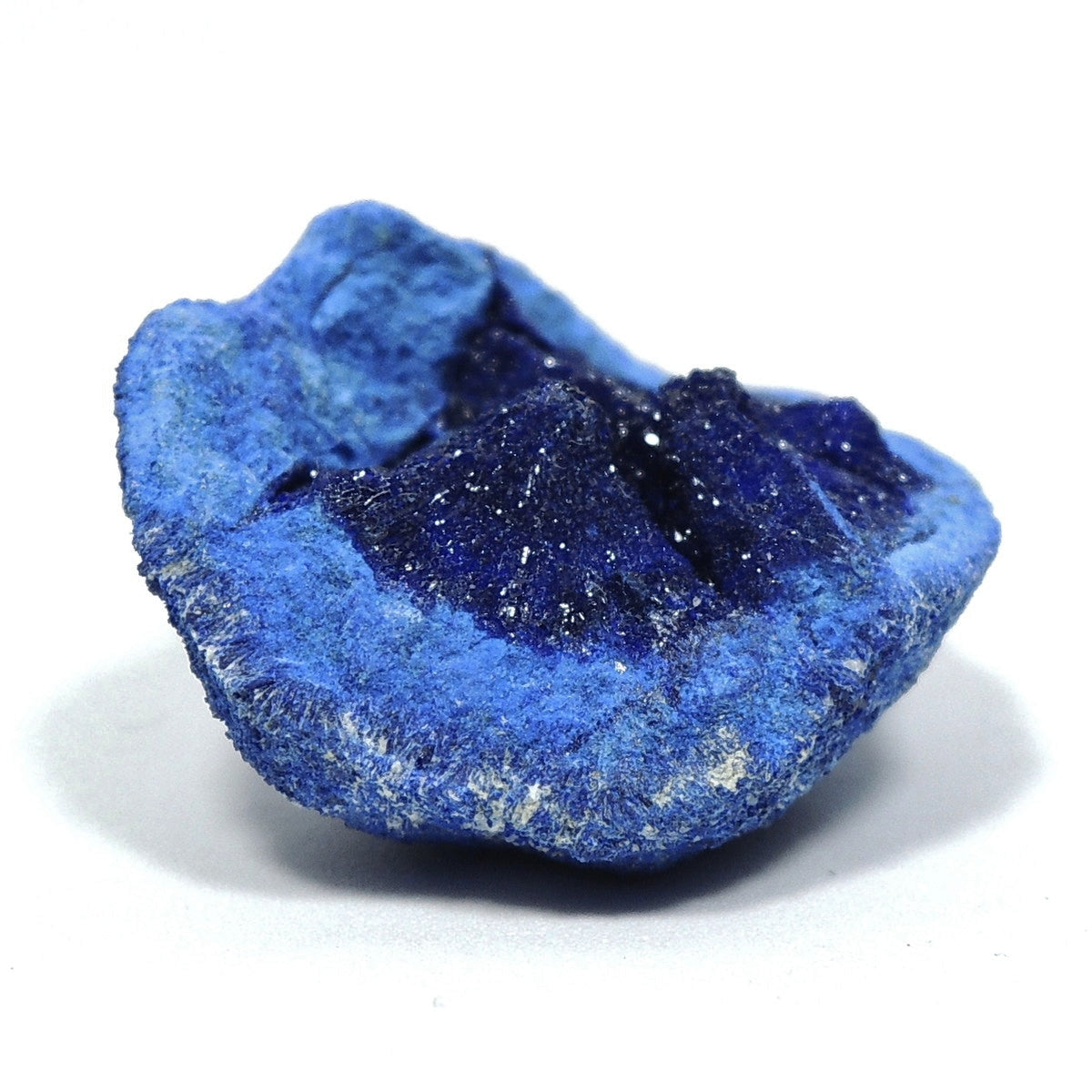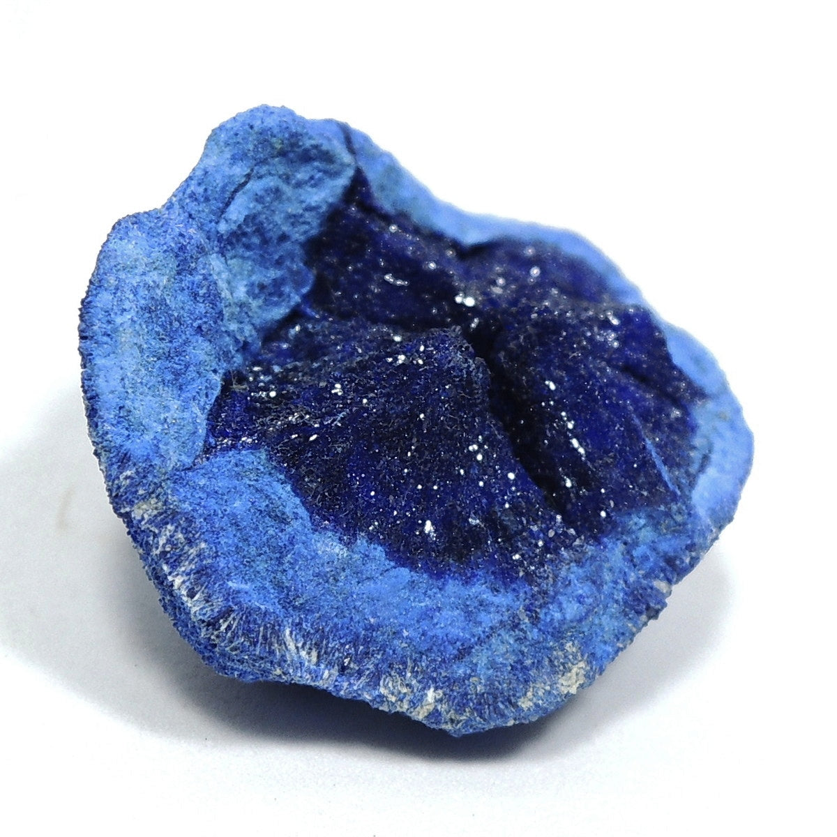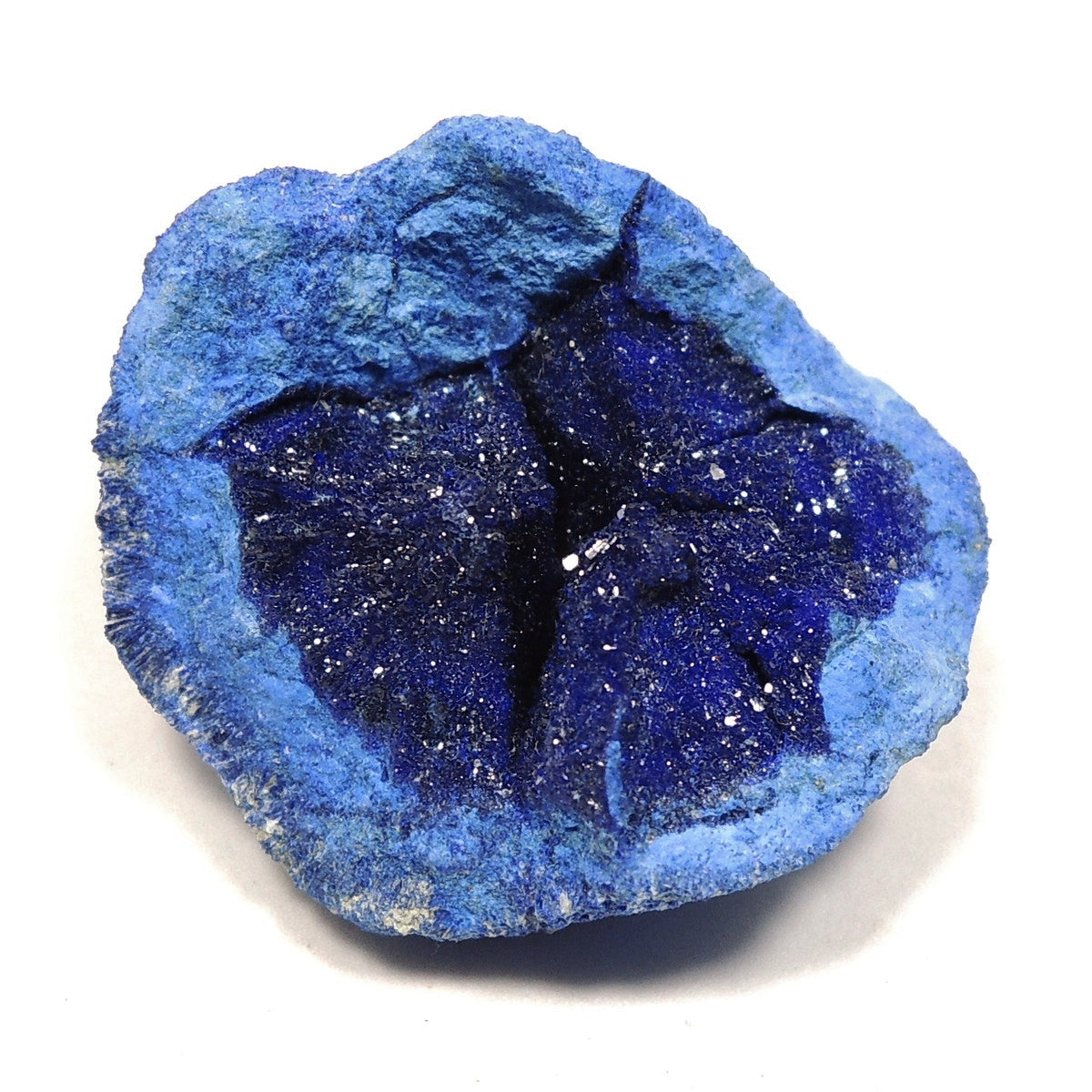 「アズライトボール」などと呼ばれる球状のアズライトを割ったものです。形状から、「アズライトジオード」「アズライトクラスター」とも。