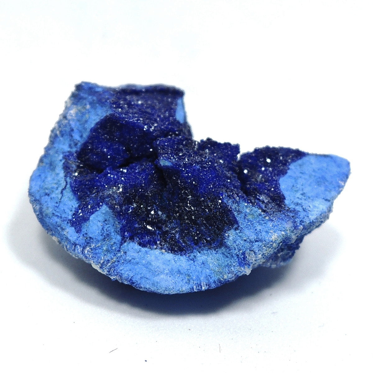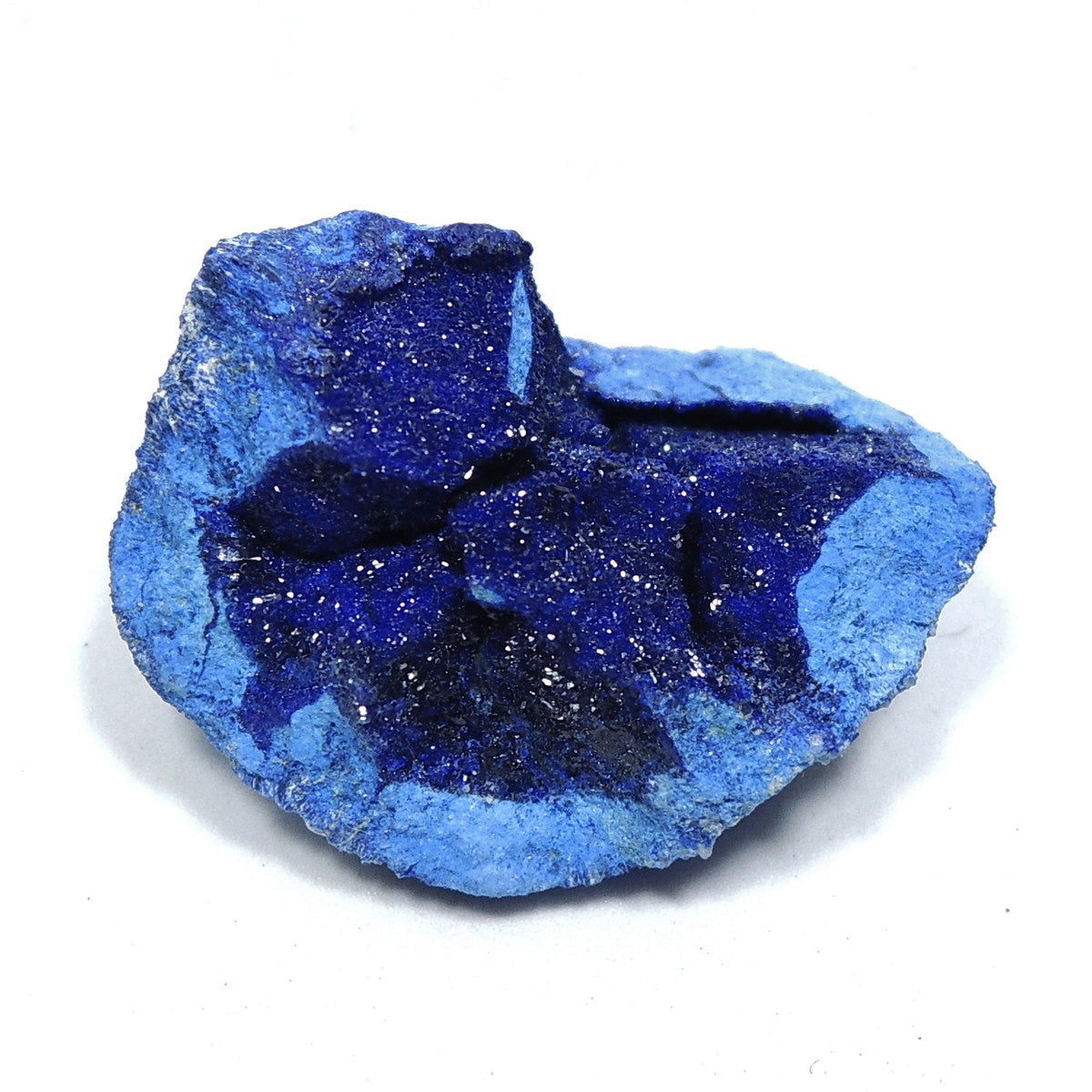「アズライトボール」などと呼ばれる球状のアズライトを割ったものです。形状から、「アズライトジオード」「アズライトクラスター」とも。