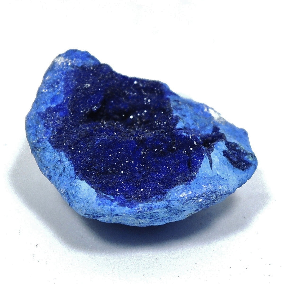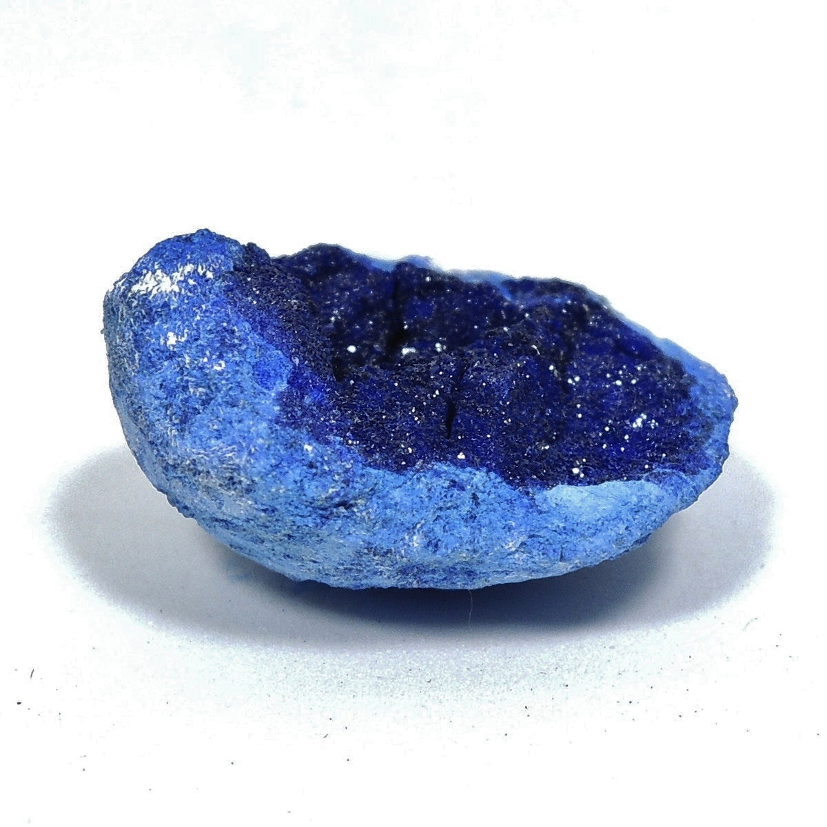 「アズライトボール」などと呼ばれる球状のアズライトを割ったものです。形状から、「アズライトジオード」「アズライトクラスター」とも。
